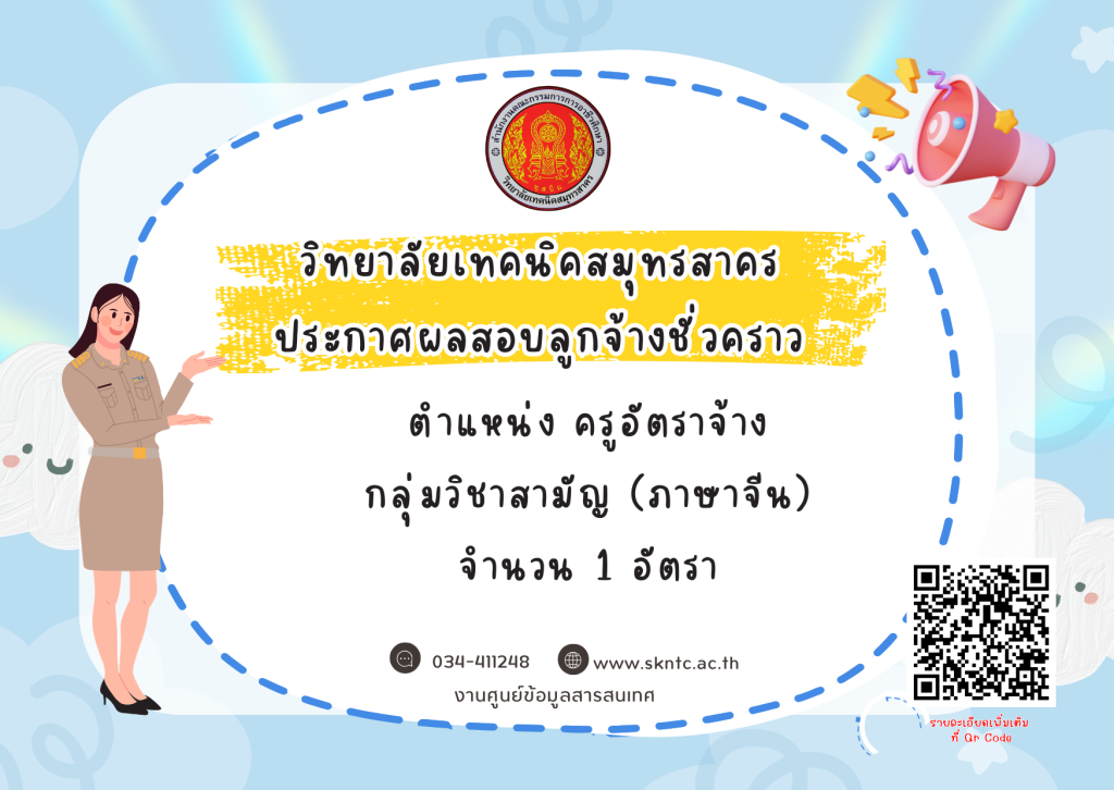 ประกาศรายชื่อผู้มีสิทธิ์สอบคัดเลือก – ตำแหน่ง : เจ้าหน้าที่ธุรการงานวิทยบริการและห้องสมุด (บ้านบ่อ) กำหนดสอบคัดเลือก วันที่ 5 พฤศจิกายน 2568 เวลา 08.30 เป็นต้นไป ณ งานบุคลากร อาคารเฉลิมพระเกียรติ ชั้น 1 วิทยาลัยเทคนิคสุมทรสาคร […]