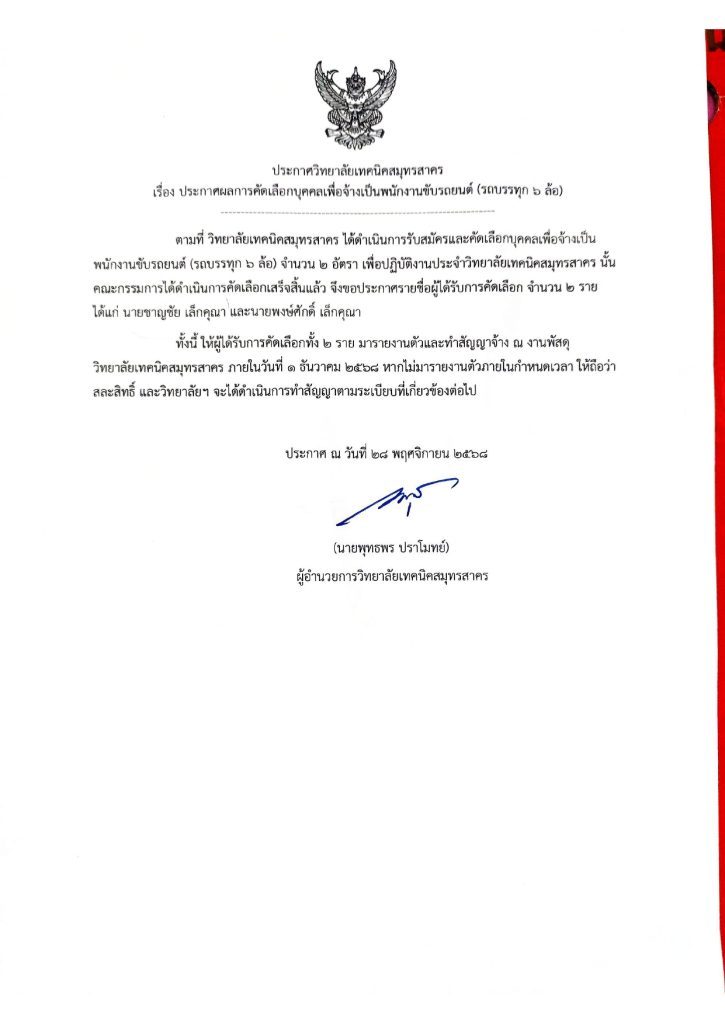 ประกาศผลการคัดเลือก พนักงานขับรถยนต์ (รถบรรทุก 6 ล้อ)By Elsa / November 28, 2025 ประกาศผลการคัดเลือก พนักงานขับรถยนต์ (รถบรรทุก 6 ล้อ) Post Views: 104