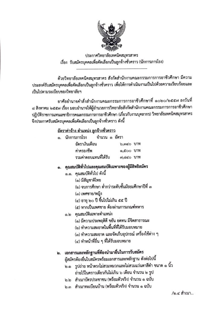ประกาศรับสมัครลูกจ้างชั่วคราว จำนวน 1 อัตรา ดังนี้