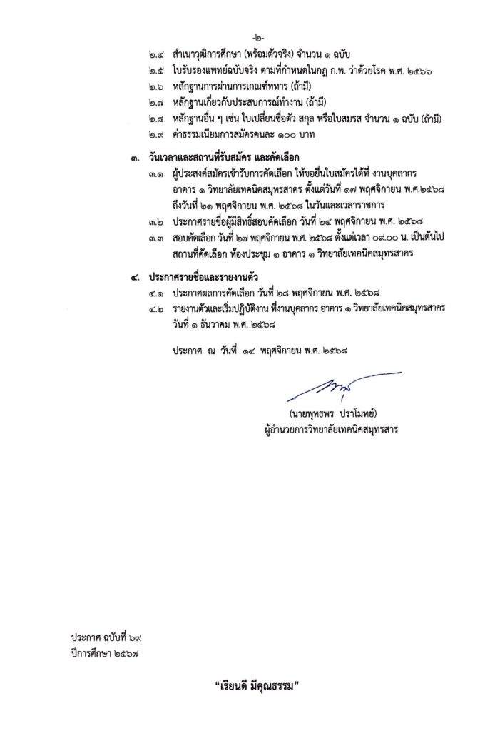 ณ งานบุคลากร อาคารเฉลิมพระเกียรติ ชั้น 1 วิทยาลัยเทคนิคสุมทรสาคร