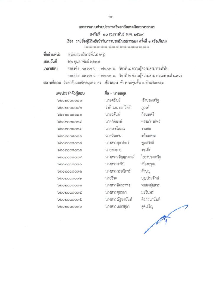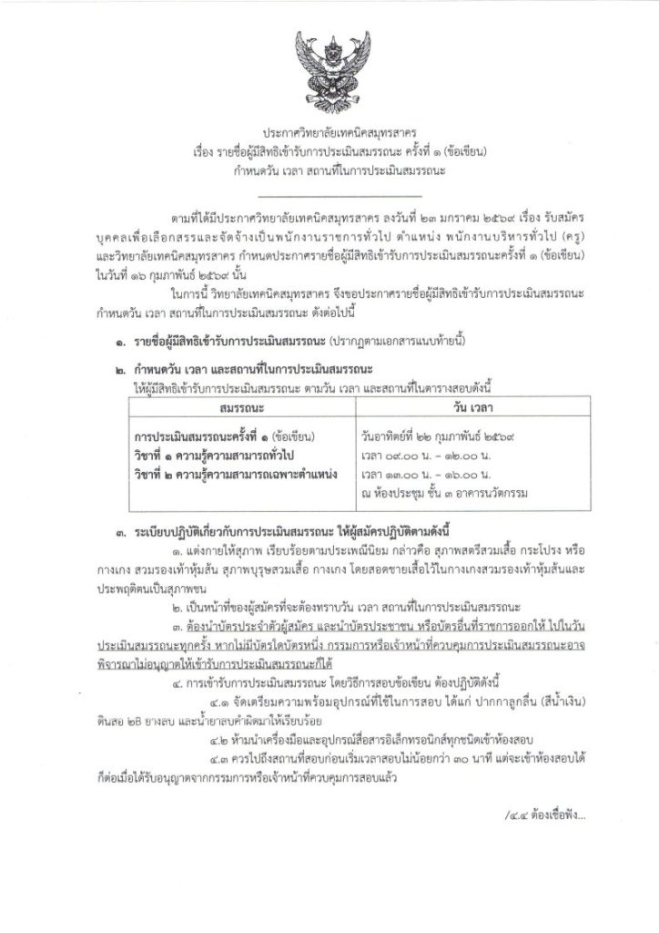 ประกาศรายชื่อผู้มีสิทธิเข้ารับประเมิน