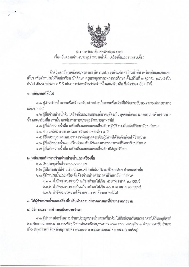 ติดต่อขอรับเอกสาร : วันที่ 25 กันยายน 2568 ณ ห้องงานพัสดุ วิทยาลัยเทคนิคสมุทรสาคร